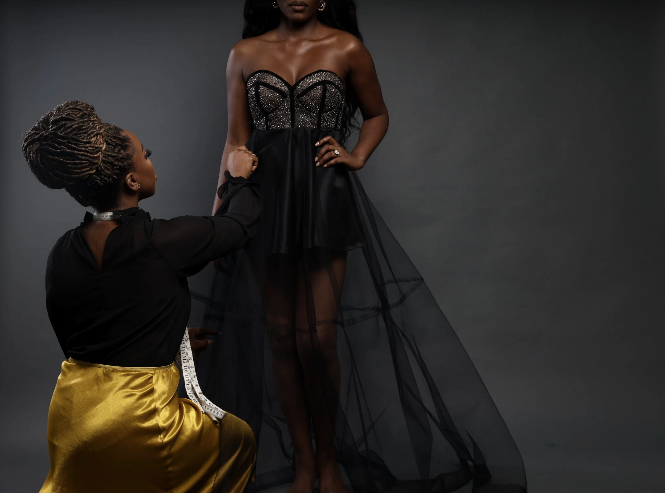 Every piece is handcrafted with attention to silhouette, structure, and detail. Our couture work reflects a commitment to craftsmanship, refined finishes, and intentional design; created to be worn, remembered, and experienced.